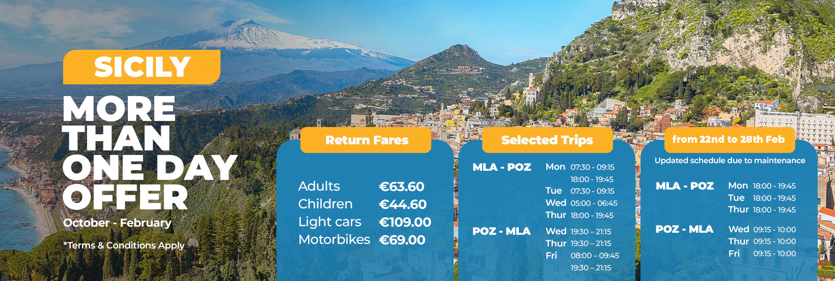 WINTER OFFER: Malta to Sicily for ONLY €63.60 per person !